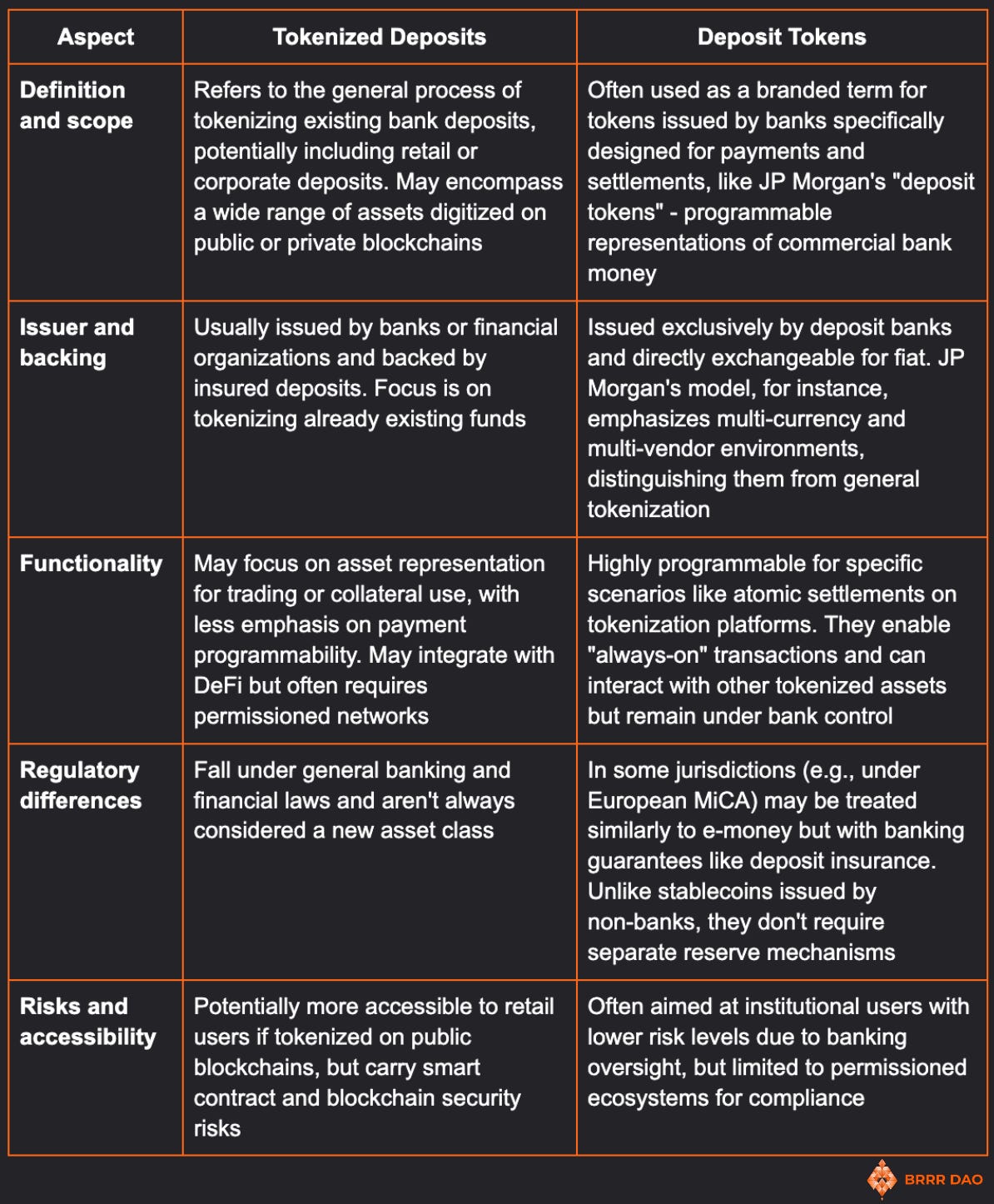 - Unlike CBDCs (closest in regulatory context), tokenized deposits enable automated interest accrual - stemming from their programmability